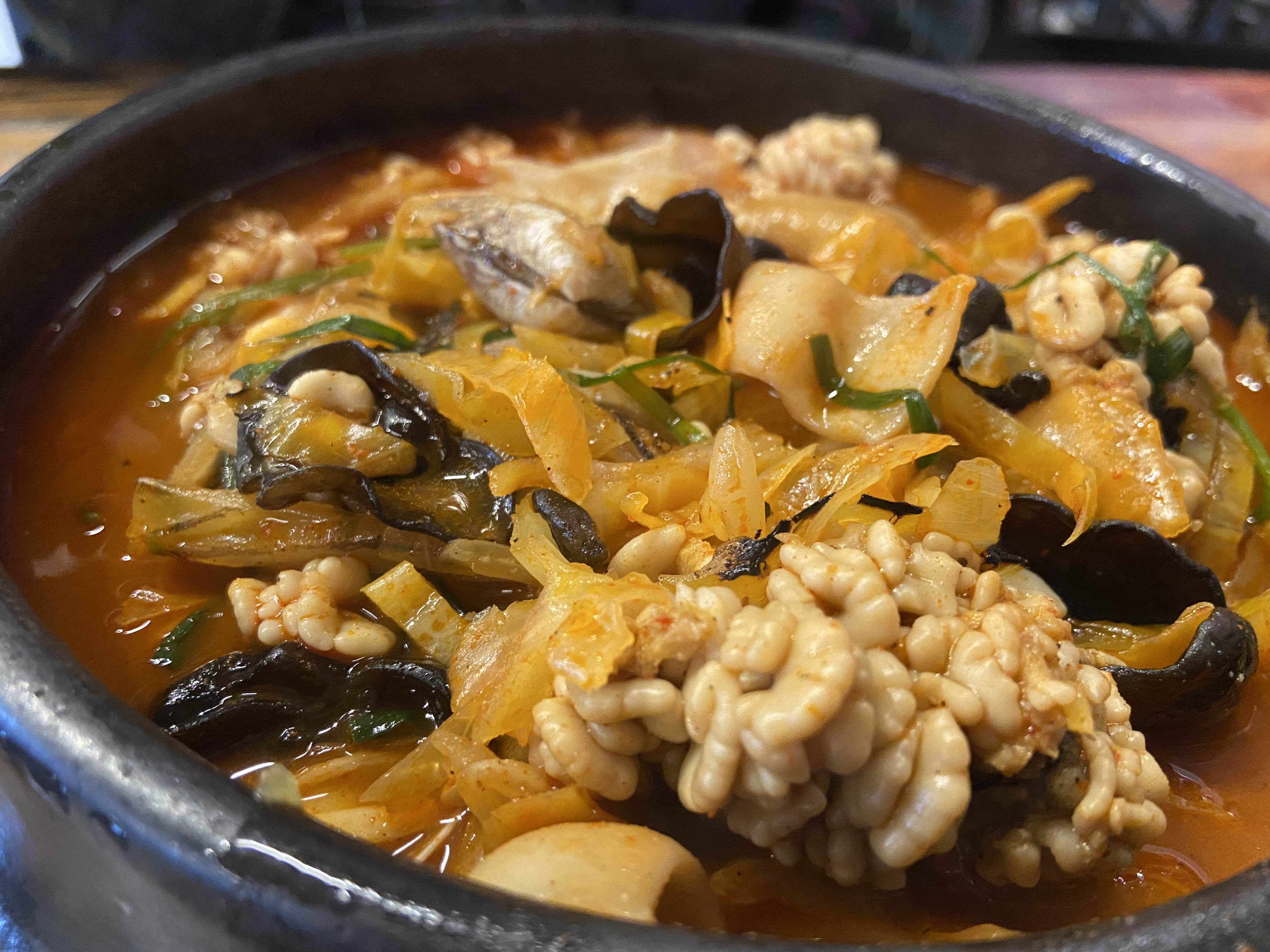 곤이짬뽕이 나왔습니다. 뚝배기에 건더기 가득가득한 것 보이시나요?