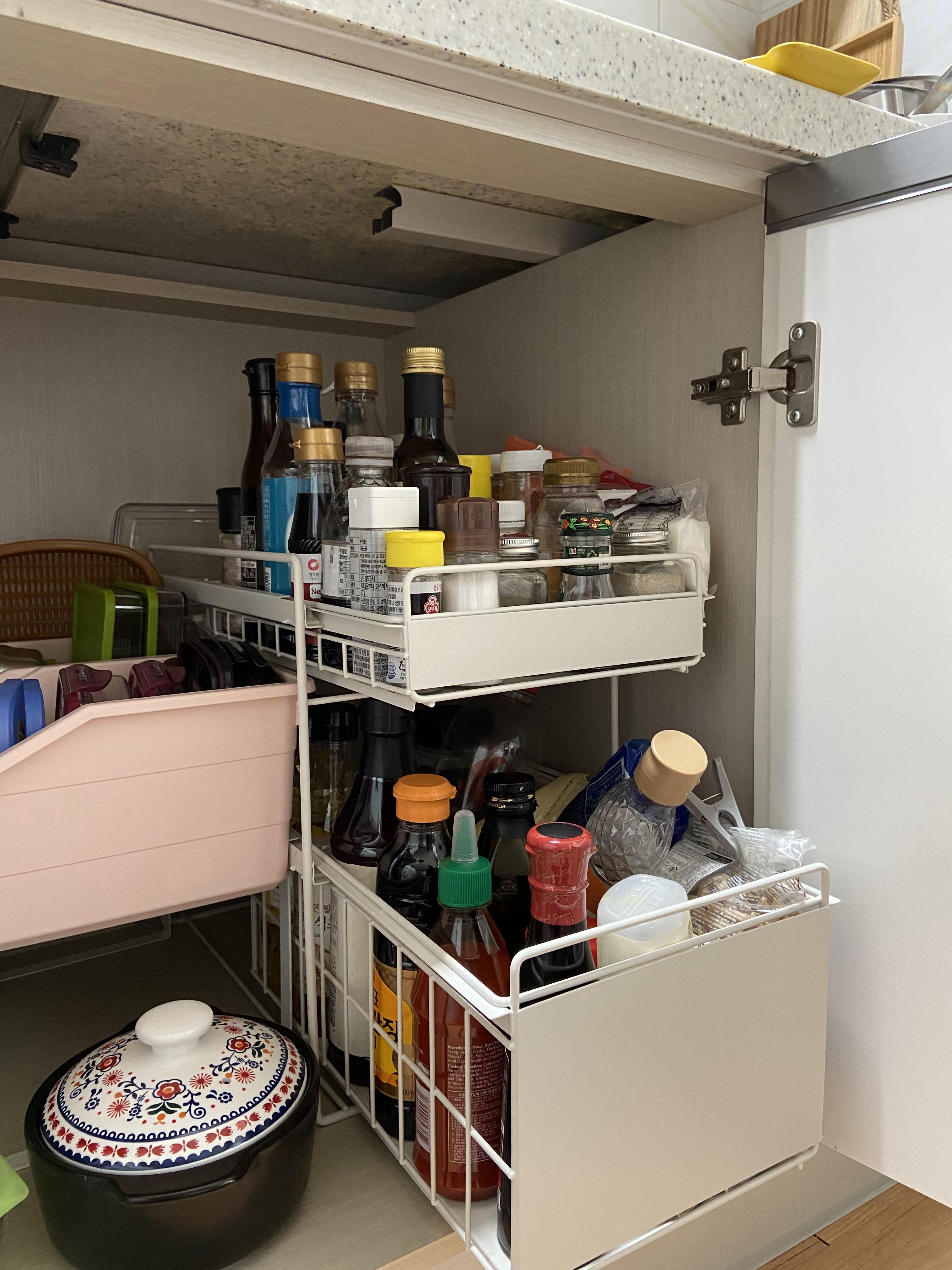 그래서 엄마의 추천으로 2단 슬라이딩 서랍장에 양념을 보관해요.